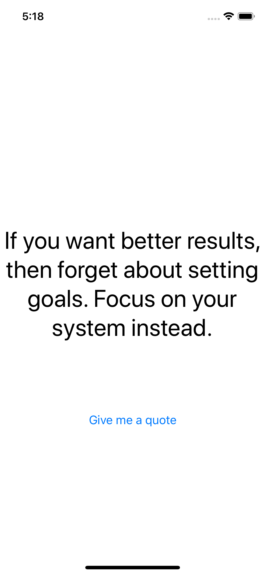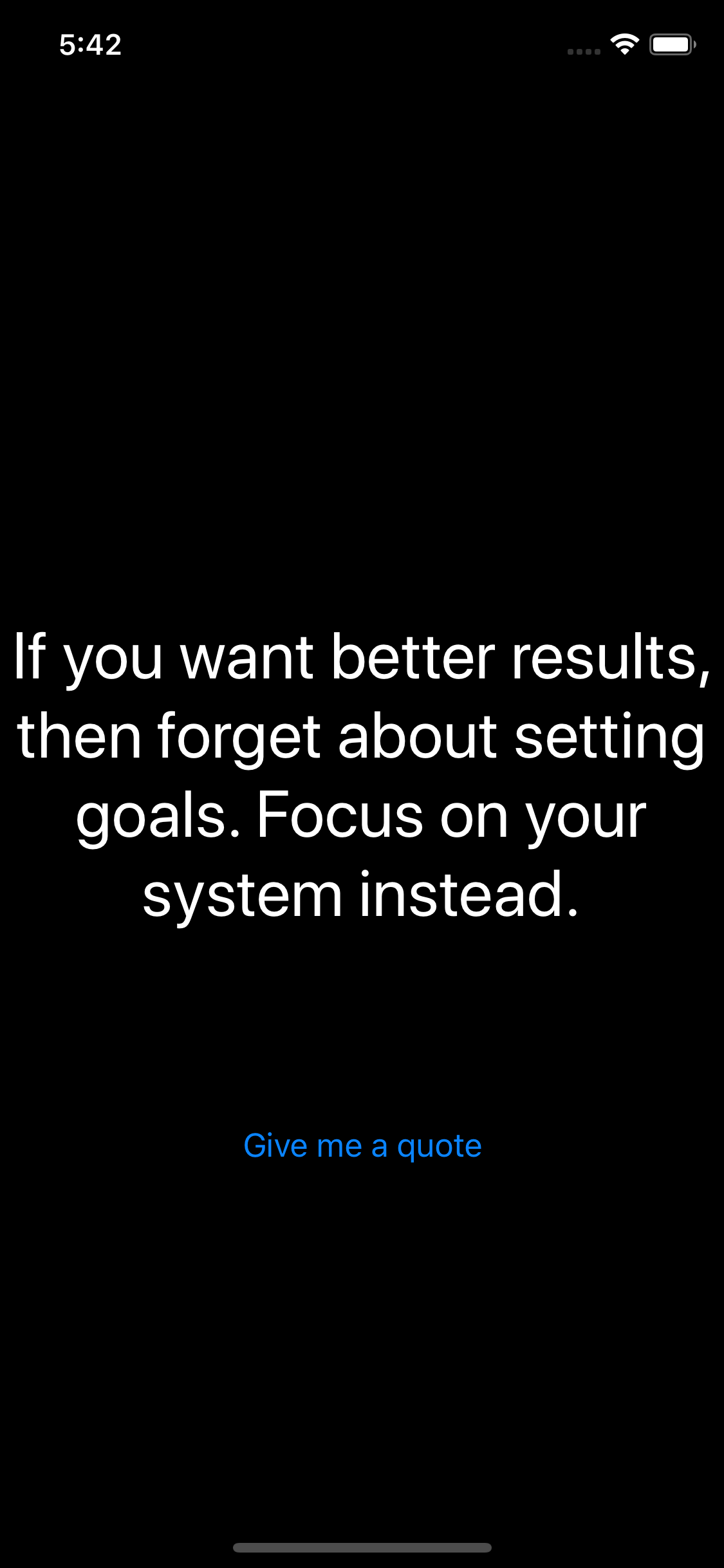 Created a simple single screen app that displays a random quote on the click of a button. A different quote each time you click that button. That’s it.
