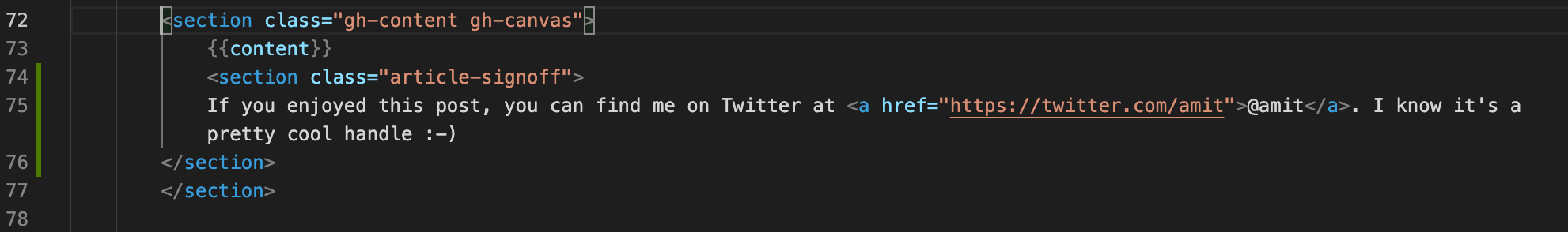 How to add a Twitter CTA at the end of each article on Ghost CMS?